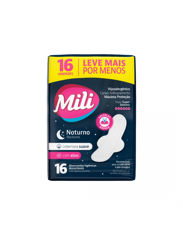 Higiene e Beleza>Higiene Pessoal >Absorventes >Absorvente MIli Noturno Suave Com Abas 16UN