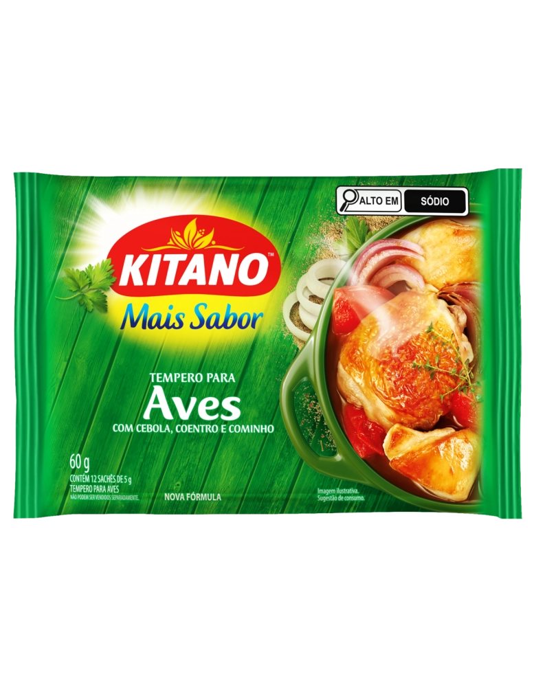 TEMPERO PÓ PARA AVES KITANO MAIS SABOR PACOTE 12X60G