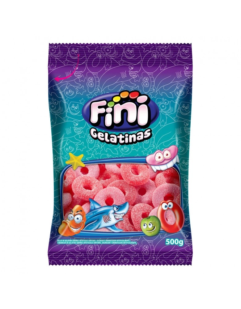 Alimentos>Guloseimas>Balas>Balas de Gelatina>Bala de Gelatina Fini Aros de Morango 500g - Fini