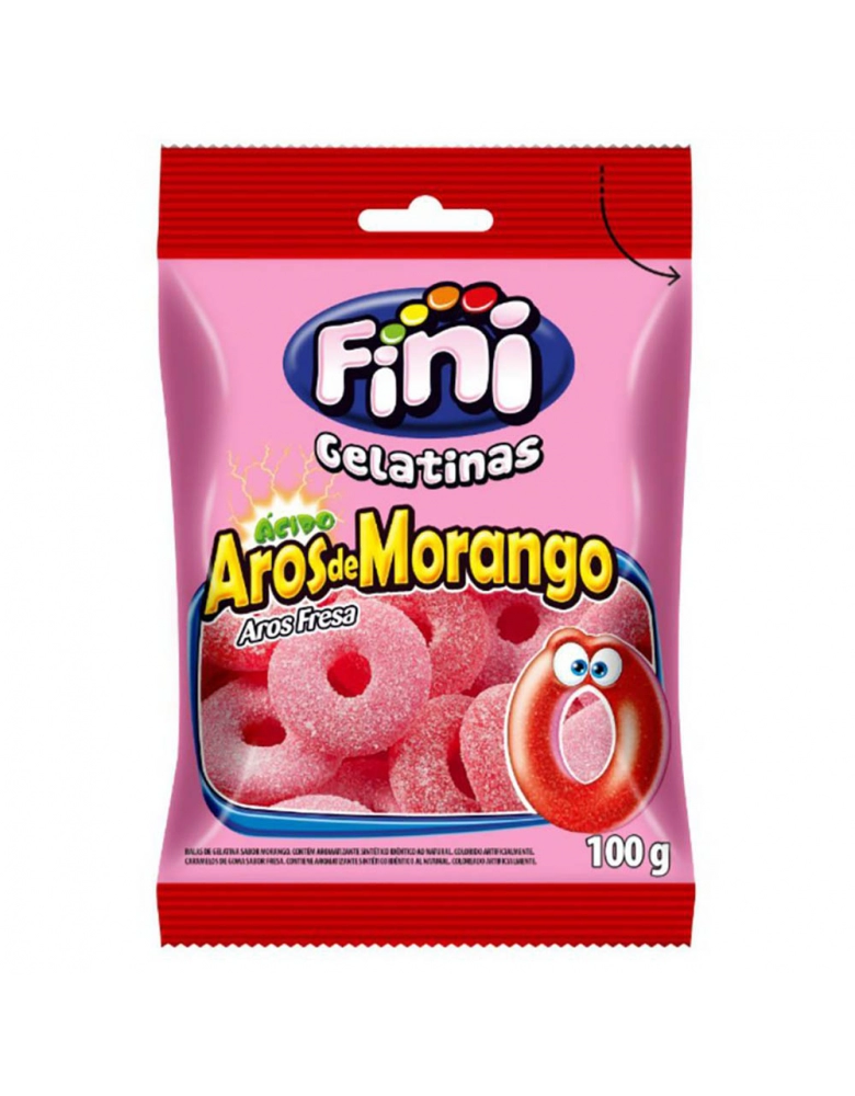 Alimentos>Guloseimas>Balas>Balas de Gelatina>Fini Aros de Morango 90g