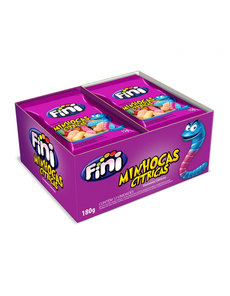 Alimentos>Guloseimas>Balas>Balas de Gelatina>Mini Minhocas Azedinhas com 12 pacotes de 15g cada - Fini