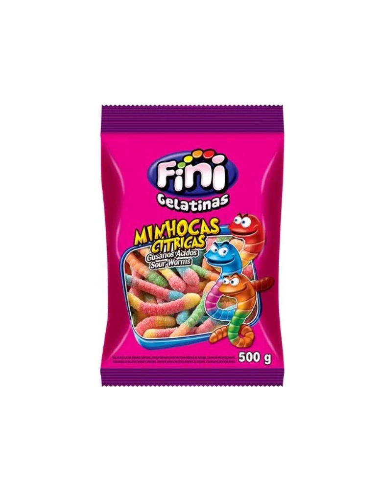 Alimentos>Guloseimas>Balas>Balas de Gelatina>Minhocas Azedinhas 500g - Fini