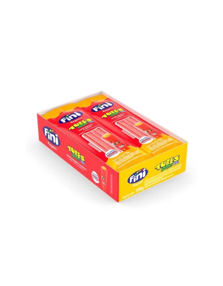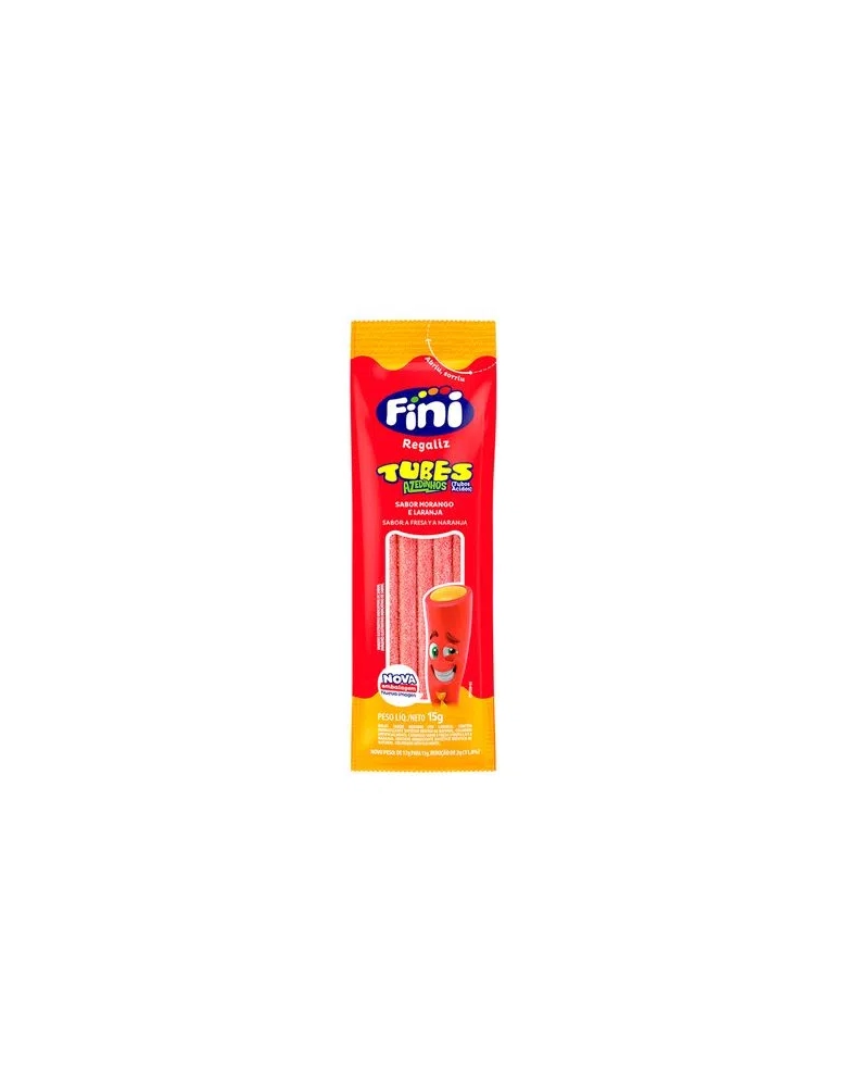 Alimentos>Guloseimas>Balas>Balas de Gelatina>Bala de Gelatina Tubes Morango Com Laranja Azedinho Fini Com 12 Pacotes de 15g