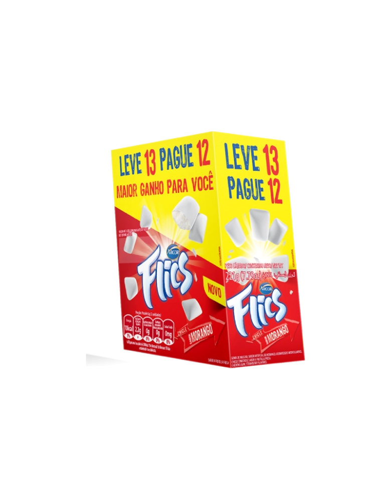 Alimentos>Guloseimas>Chicletes>Chiclete Flics Morango leve 13 pague 12 unidades