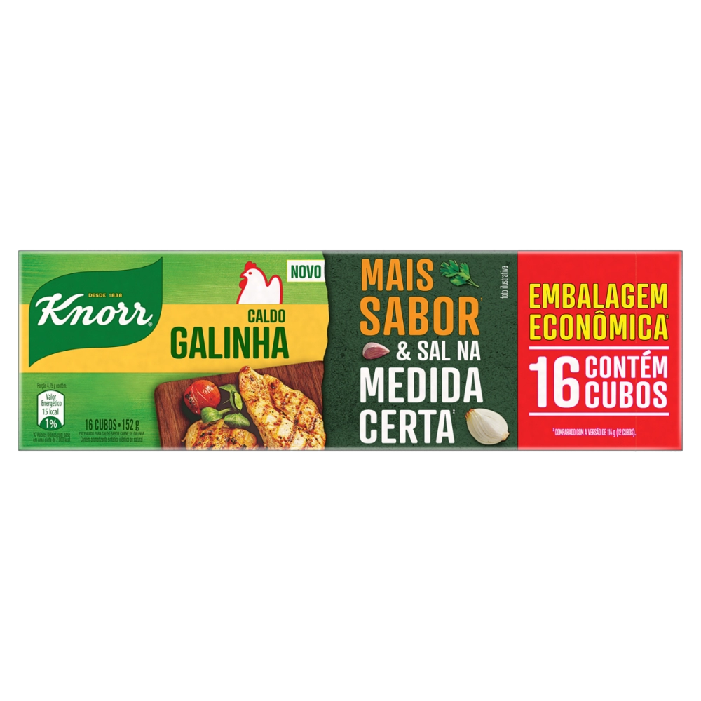 Alimentos>Condimentos e Conservas>Conservas e Temperos>CALDO TABLETE GALINHA KNORR MAIS SABOR C/16 UNID 152G