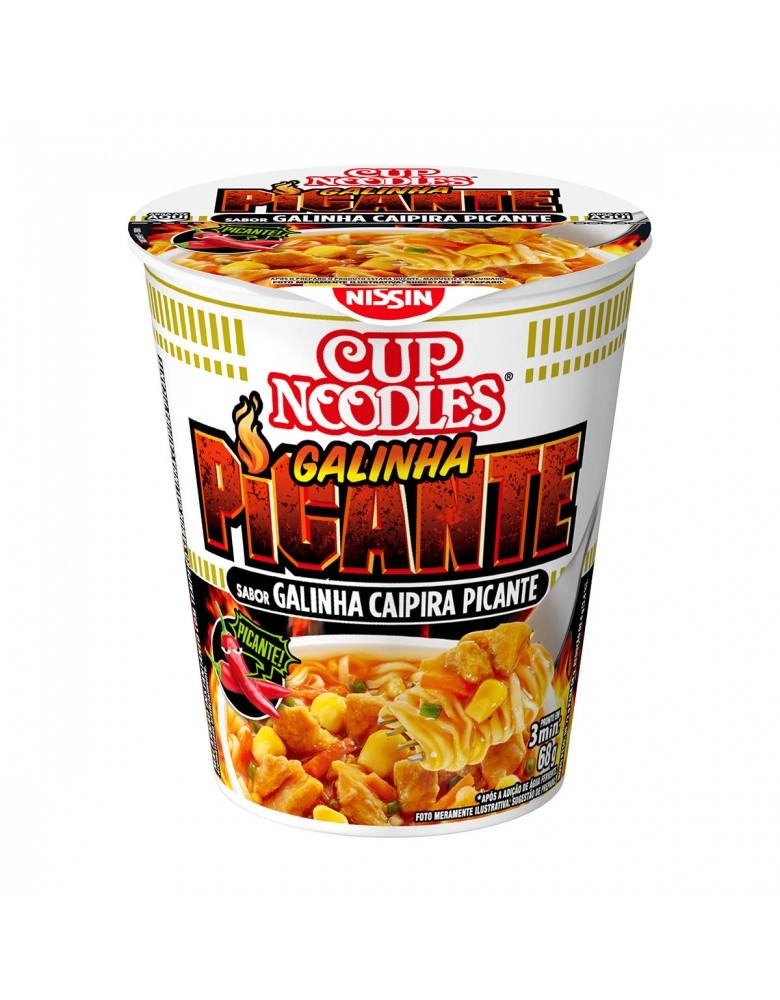 O Nissin Cup Noodles Galinha Caipira Picante é um delicioso macarrão instantâneo em copo, desenvolvido pela Nissin para proporcionar uma refeição de rápido preparo e com um sabor incrível, lhe oferecendo uma alimentação completa mesmo nos dias mais corridos.