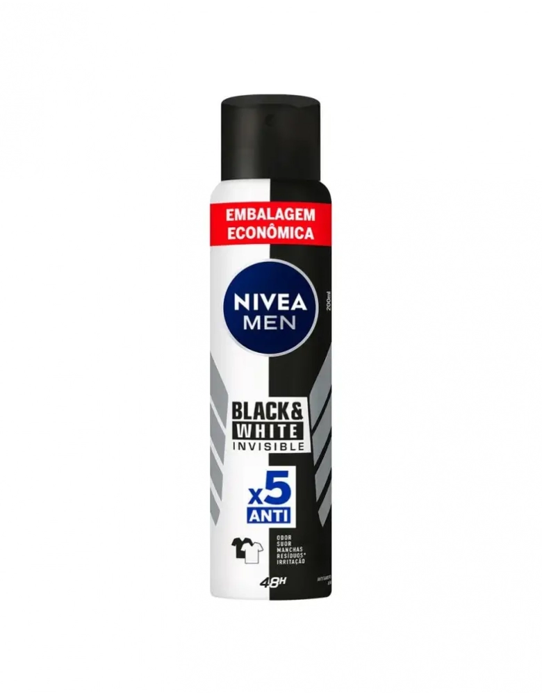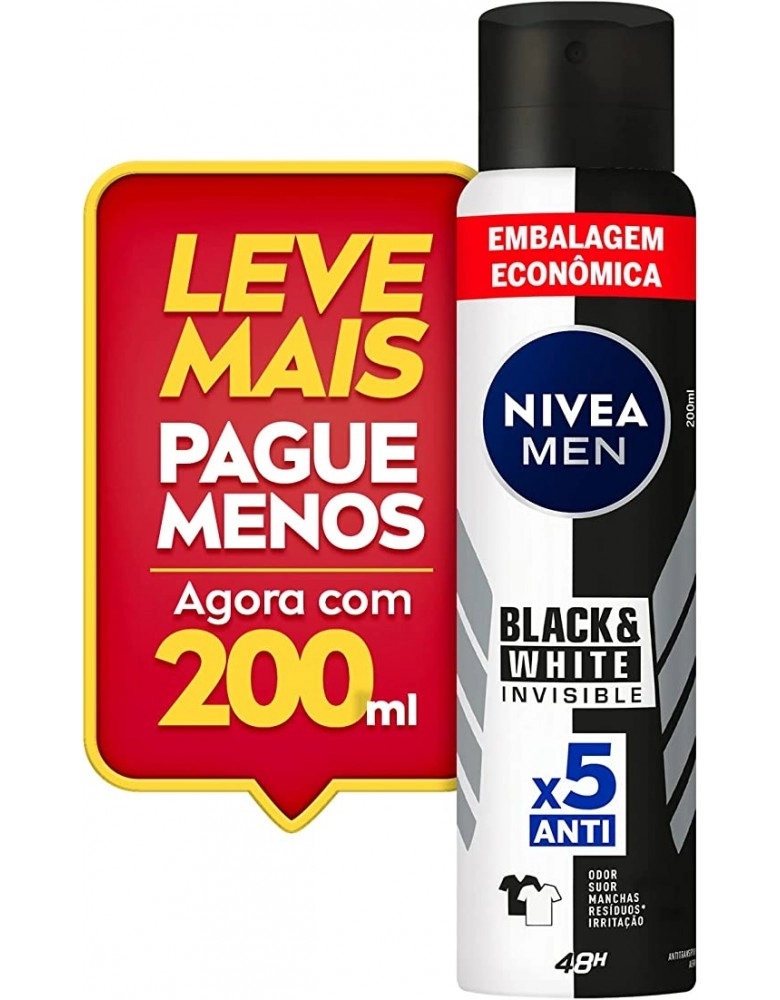 Higiene e Beleza>Higiene e Beleza>Cuidados Corporais >Desodorantes >Nivea Men Desodorante Aerosol Invisible Black & White Leve 200ml Pague 150ml
