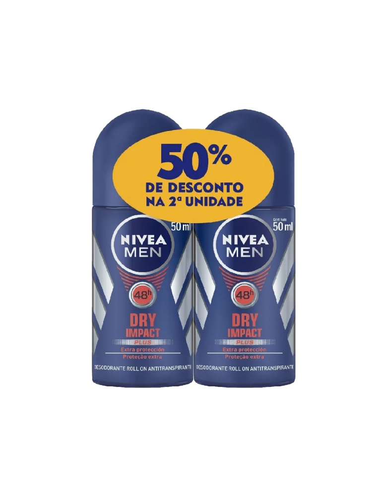 Higiene e Beleza>Higiene e Beleza>Cuidados Corporais >Desodorantes >Nívea Men Desodorante Roll On Dry Impact Pack com 50% de Desconto 50ml
