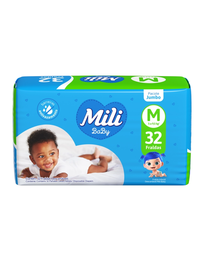 Higiene e Beleza>Higiene e Beleza>Linha Infantil >Fraldas >Fraldas Infantis>Fralda Descartável Mili Baby Jumbo M 32 Unidades
