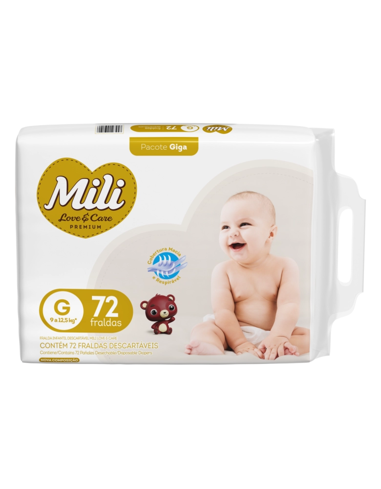 Higiene e Beleza>Higiene e Beleza>Linha Infantil >Fraldas >Fraldas Infantis>Mili Fralda Love & Care Premium Giga G 72 Unidades