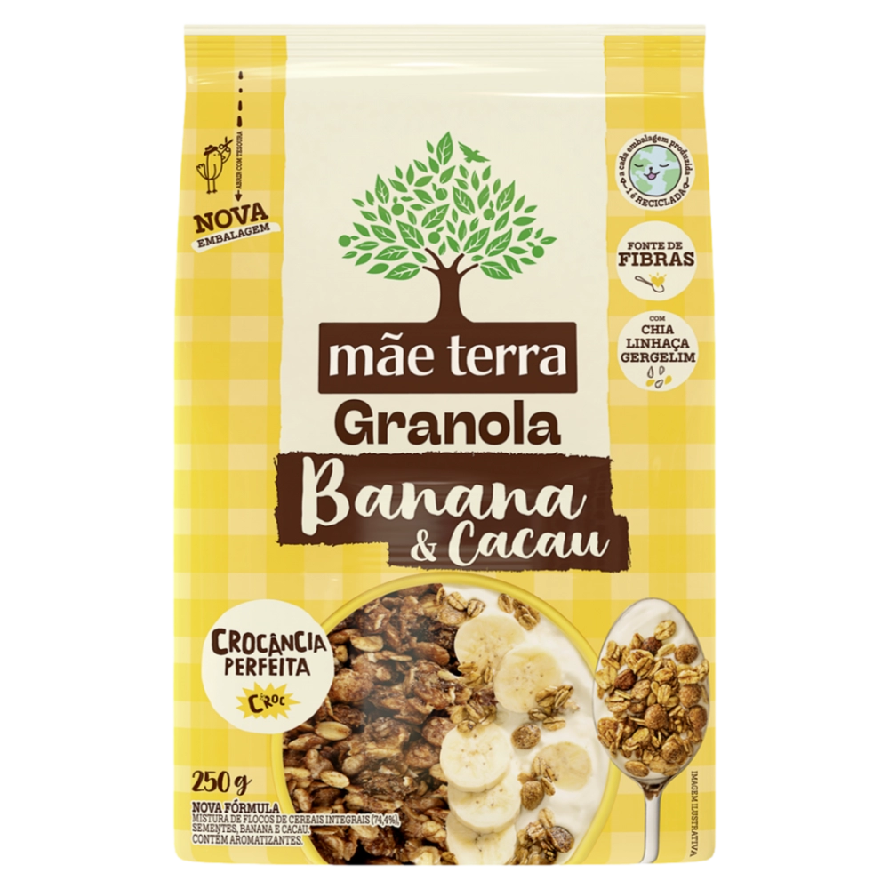 Alimentos>Grãos e cereais>GRANOLA INTEGRAL BANANA CACAU MÃE TERRA PACOTE 250G