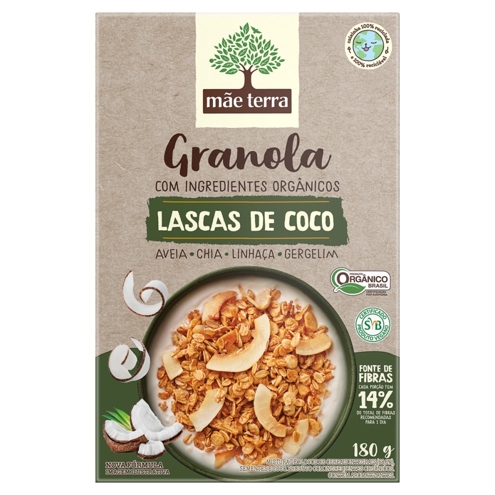 Alimentos>Grãos e cereais>GRANOLA INTEGRAL ORGÂNICA LASCAS COCO MÃE TERRA CAIXA 180G