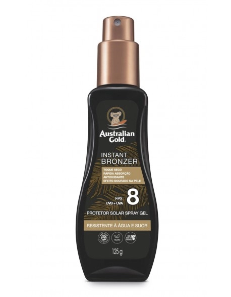 Protetor Solar Australian Gold Instant Bronzer Spray Gel FPS 8 125g