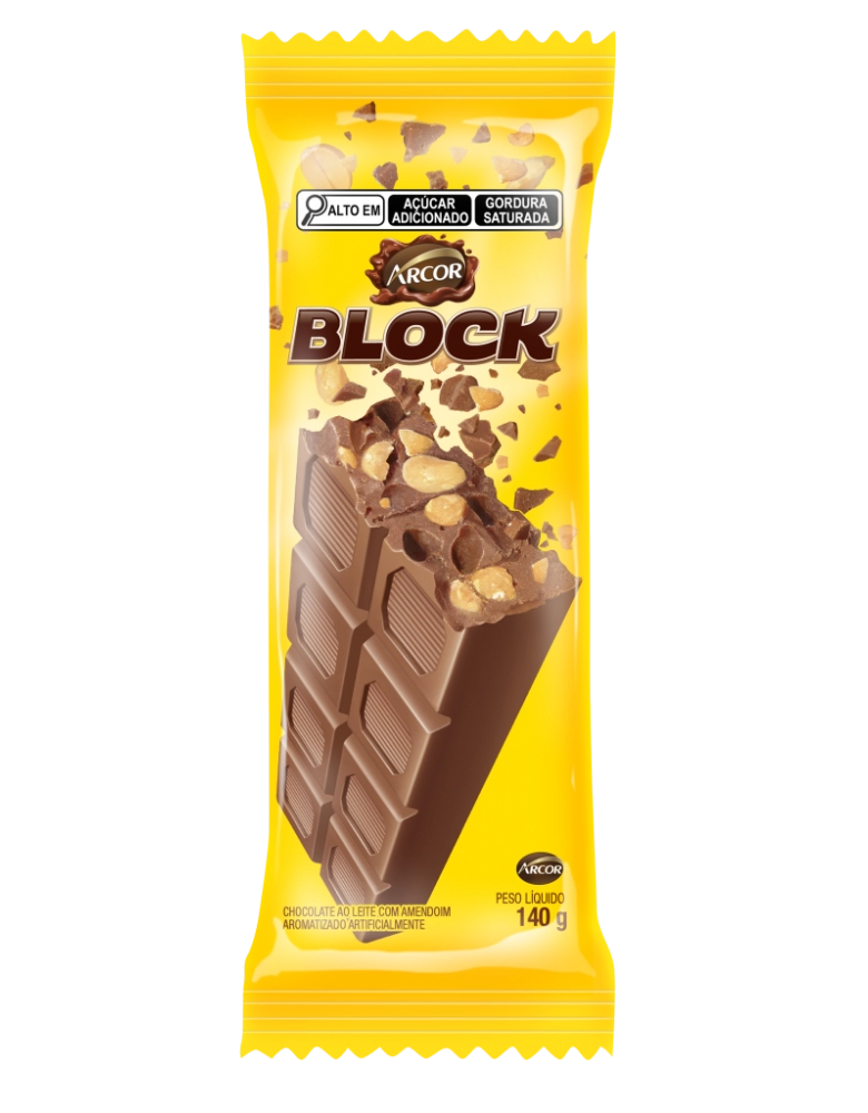 Tablete Chocolate Block Arcor Display com 12 unidades de 140g