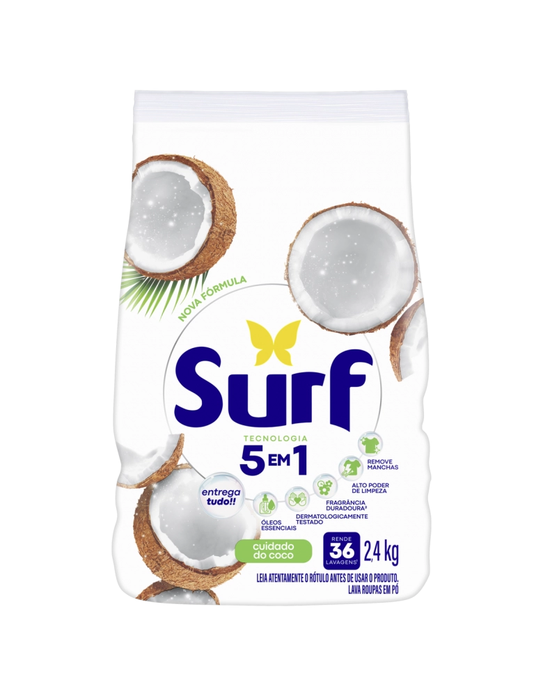 Lava Roupas em Po Surf 5 em 1 Cuidado do Coco 2,4Kg