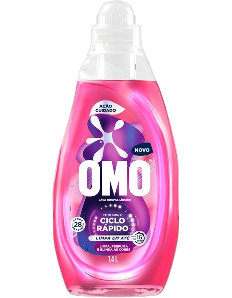Limpeza >Lava Roupas >LAVA-ROUPAS LÍQUIDO OMO CICLO RÁPIDO AÇÃO CUIDADO FRASCO 1,4L
