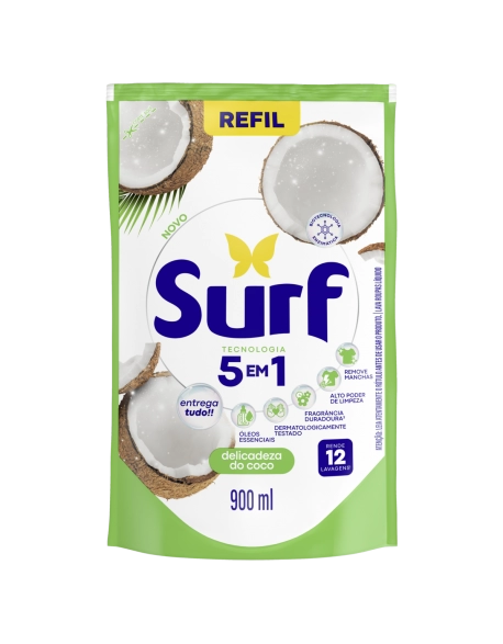 Lava Roupas Líquido Surf Cuidado do Coco Sache Refil 900ml