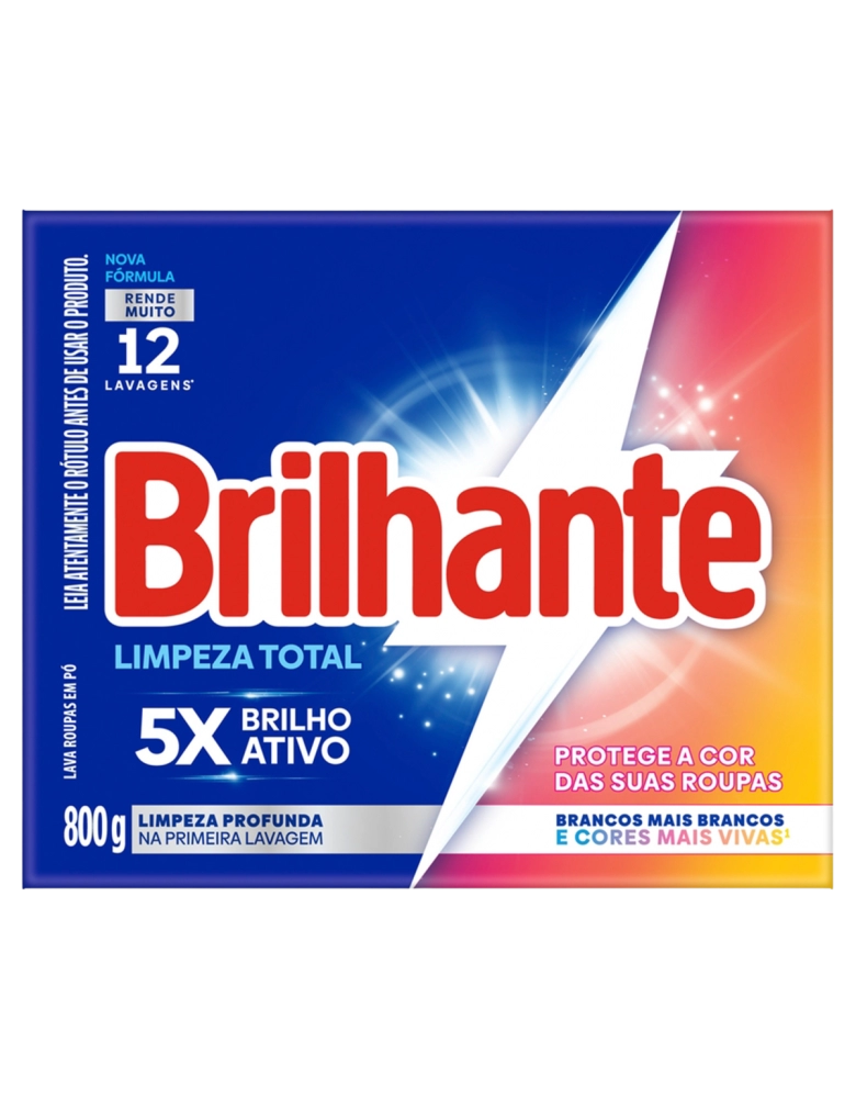 Limpeza >Lava Roupas >Lava-Roupas Pó Roupas Brancas e Coloridas Brilhante Limpeza Total Caixa 800g