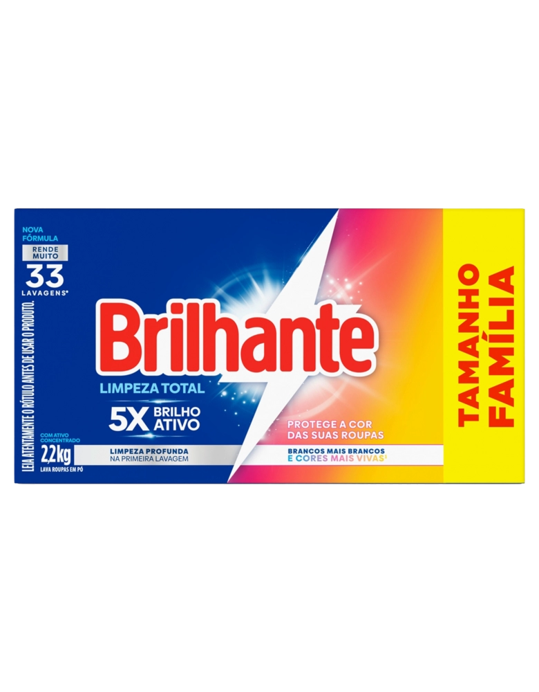 Limpeza >Lava Roupas >Lava-Roupas Pó Roupas Brancas e Coloridas Brilhante Limpeza Total Caixa Tamanho Família 2,2Kg