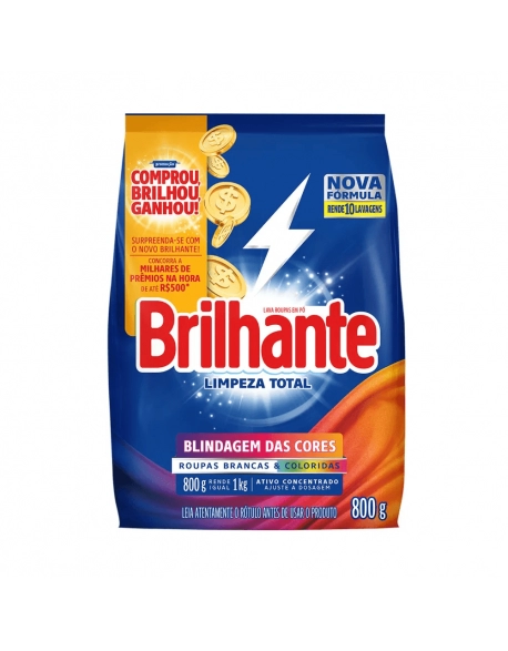 Limpeza >Lava Roupas >Lava Roupas Pó Roupas Brancas e Coloridas Brilhante Limpeza Total Pacote 800g