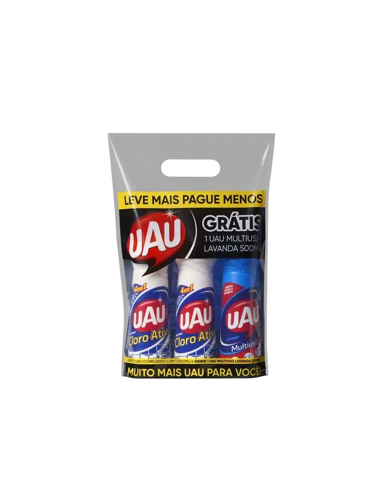 Limpeza >Limpadores>Kit 2 Cloros Ativo + 1 Multiuso 500ml Uau