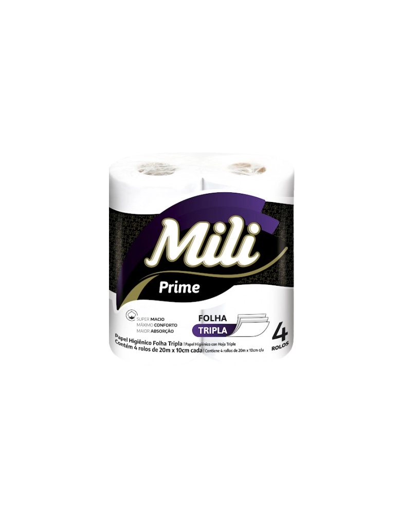 Higiene e Beleza>Higiene Pessoal >Papéis Higiênicos>Papel Higiênico Mili 20M Folha Tripla Prime Confort 4UN