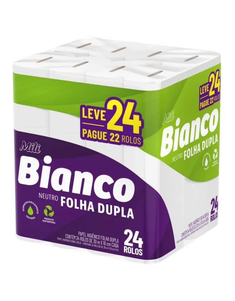 Higiene e Beleza>Higiene Pessoal >Papéis Higiênicos>Papel Higiênico Mili Bianco 30M Neutro Promo L24 P22
