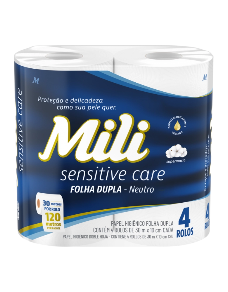 Higiene e Beleza>Higiene Pessoal >Papéis Higiênicos>Mili Sensitive Care Papel Higiênico Folha Dupla Neutro 30m 4 Rolos