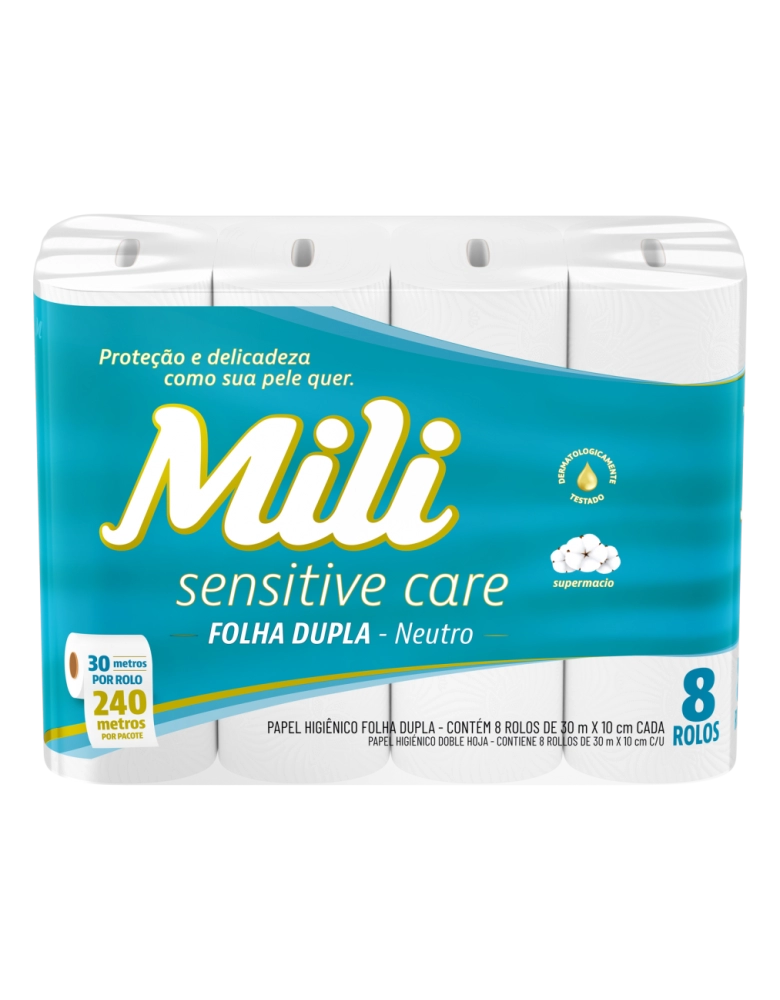 Higiene e Beleza>Higiene Pessoal >Papéis Higiênicos>Mili Sensitive Care Papel Higiênico Folha Dupla Neutro 30m 8 Rolos