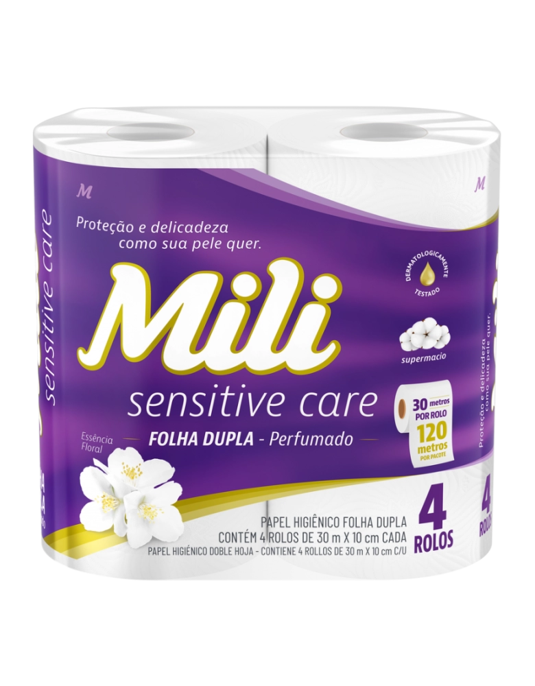 Higiene e Beleza>Higiene Pessoal >Papéis Higiênicos>Mili Sensitive Care Papel Higiênico Folha Dupla Perfumado 30m 4 Rolos