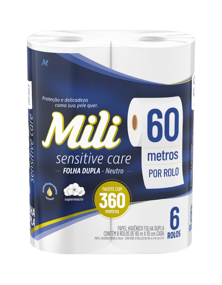 Higiene e Beleza>Higiene Pessoal >Papéis Higiênicos>Mili Sensitive Care Papel Higiênico Folha Dupla Neutro 60m 6 Rolos