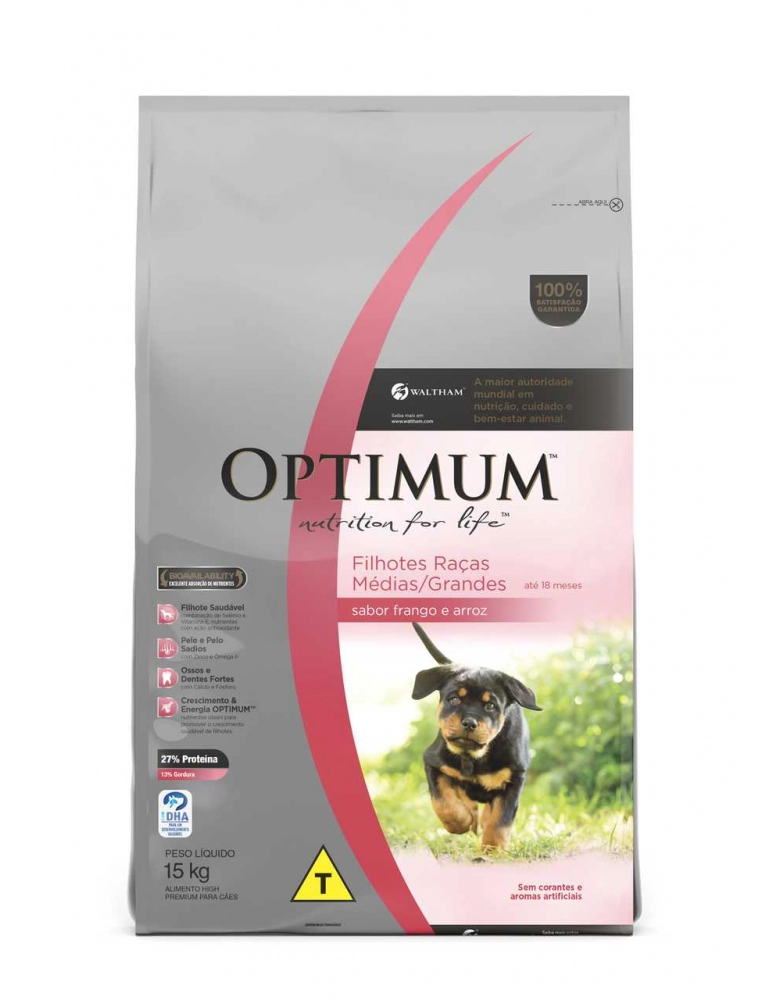 PetFoods>Cães>Rações Secas>Ração Optimum para Cães Filhotes Raças Médias e Grandes 15KG