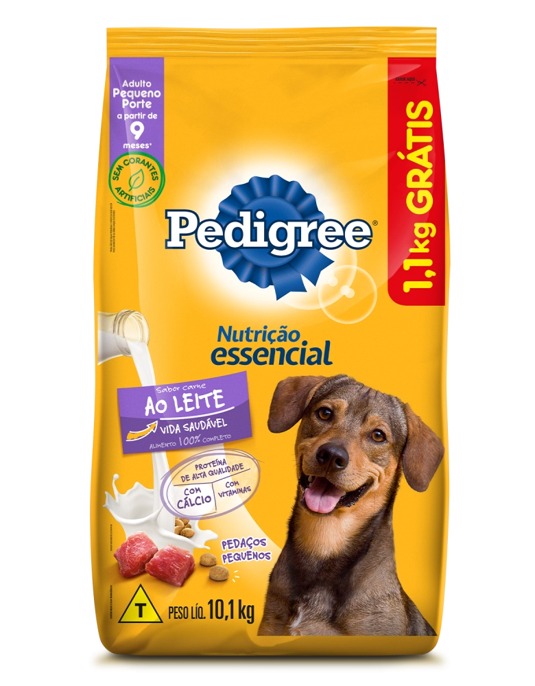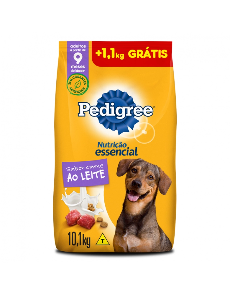 PetFoods>Cães>Rações Secas>PEDIGREE® Nutrição Essencial ao Leite Leve 10,1kg Pague 9kg Bônus Bag