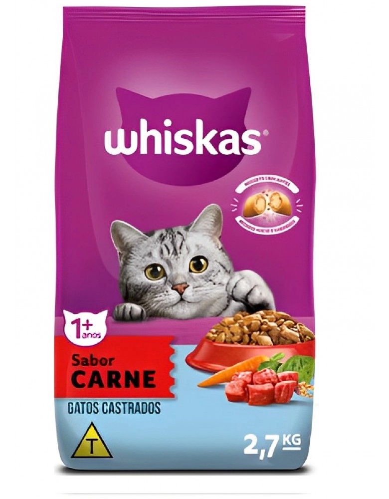 PetFoods>Cães>Rações Secas>WHISKAS® Gatos Castrados Carne 2,7kg