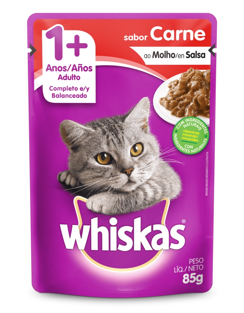 PetFoods>Gatos>Rações Úmidas>WHISKAS® Sachê Adulto Sabor Carne ao Molho 85g