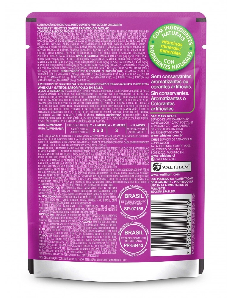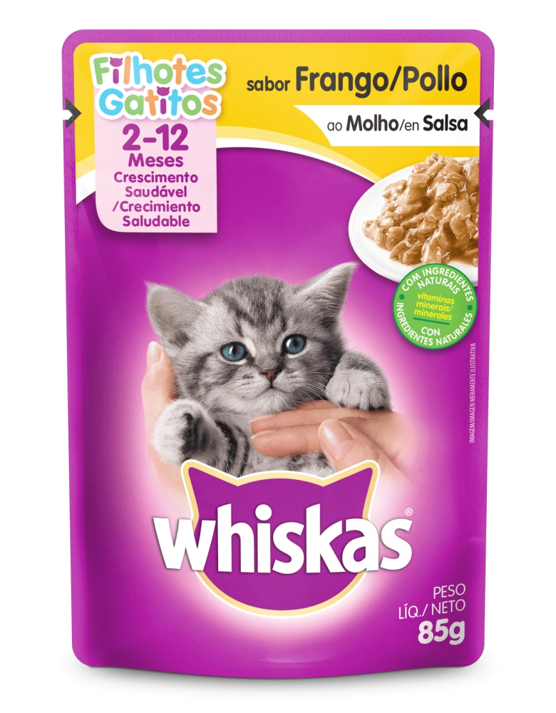 PetFoods>Gatos>Rações Úmidas>WHISKAS® Sachê para Gatos Filhotes Sabor Frango ao Molho 85g