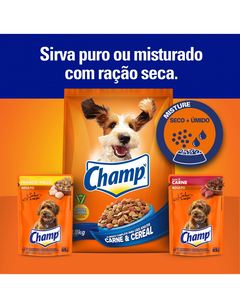 PetFoods>Cães>Rações Úmidas>Ração Úmida Champ Sachê Adulto Carne 85g