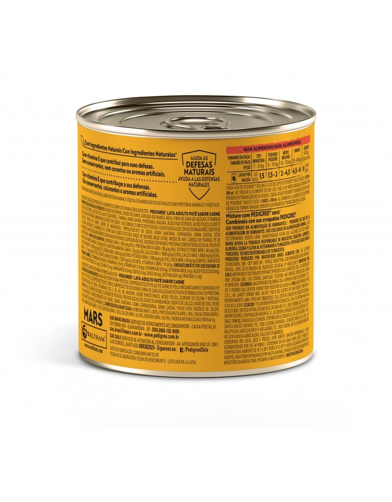 PetFoods>Cães>Rações Úmidas>PEDIGREE® Lata Adulto Patê Sabor Carne 280g