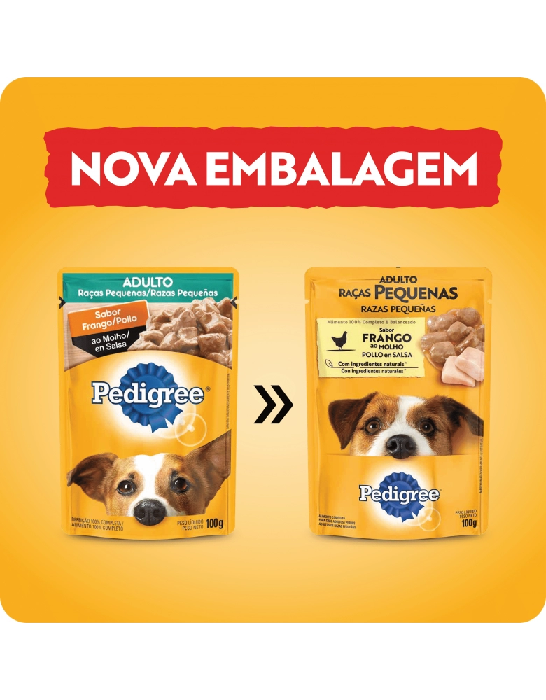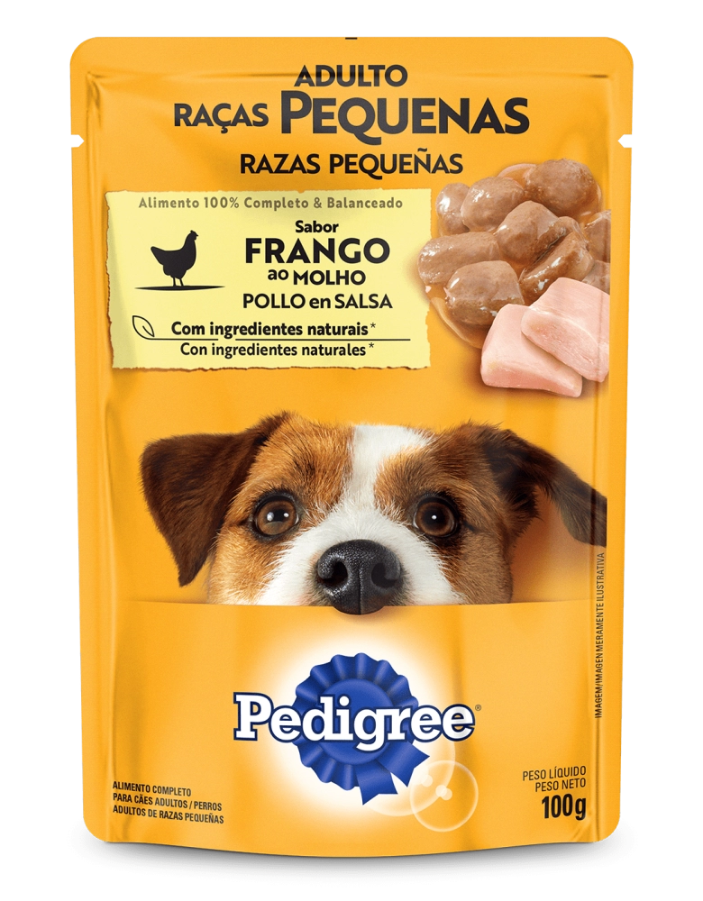 PetFoods>Cães>Rações Úmidas>PEDIGREE® Sachê Adulto Raças Pequenas Sabor Frango ao Molho 100g