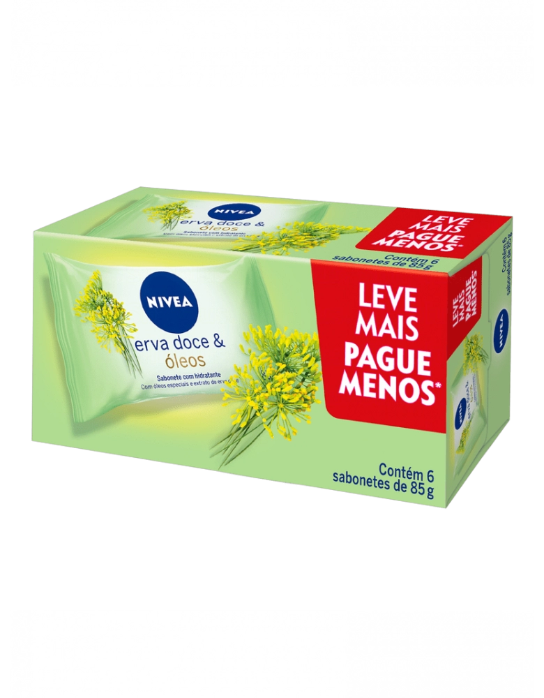 Higiene e Beleza>Higiene e Beleza>Cuidados Corporais >Sabonete em Barra>Nivea Sabonete Hidratante Erva Doce Leve Mais Pague Menos 6 unidades 85g